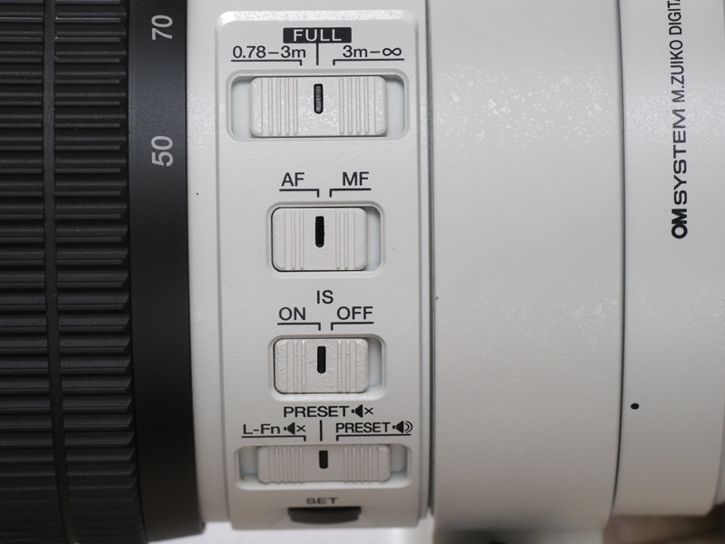 M.ZUIKO DIGITALレンズとしては少ない白い鏡筒を採用していることも気分が上がりそうです。PROレンズを示す青いラインがまた気持ち的にも効いていますね。