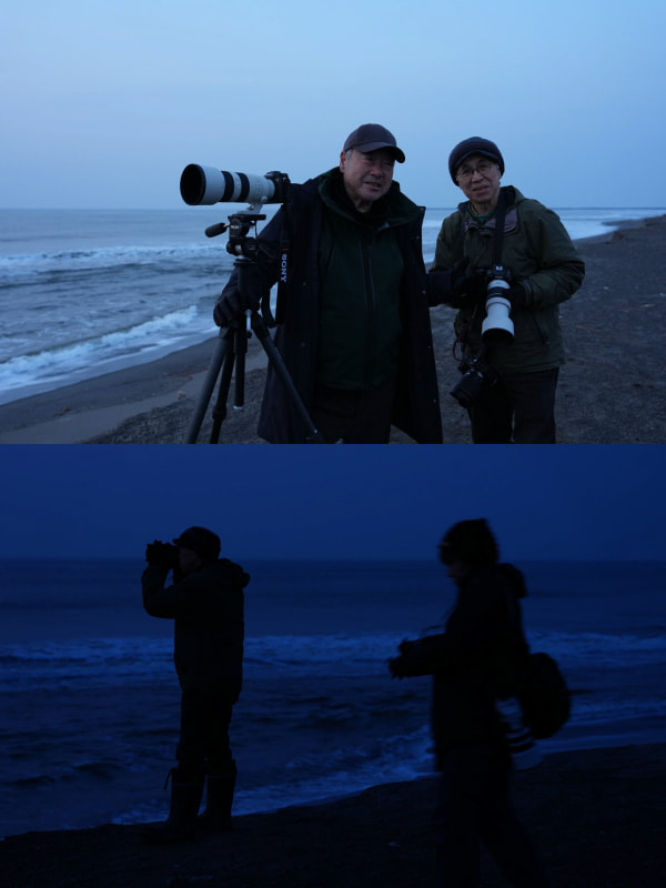 今回は十勝文化賞を受賞した浦島久先生、同行を希望した写真家の宇井眞紀子さん、アマチュアカメラマンの梅村明さんと私の4人で個々にカメラを持ち-3℃の海辺を歩く。