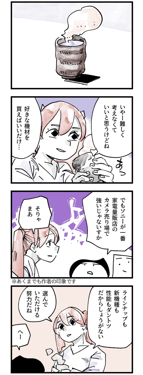 みんな大好きカメラ売り場。ソニーが目立つ場所にあることが多いように思います。探さなくても見つかるので。