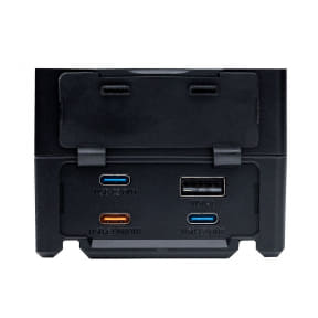 D-Tap出力ポート×2に加え、汎用性のあるUSB Type-C入出力ポート(最大100W)×1、USB Type-C出力ポート(最大18W)×2、USB Type-A出力ポート×1を搭載。USB Type-Cによる100W充電には、eMarkerを搭載したケーブルが必要となる。