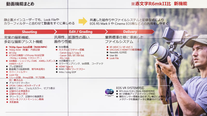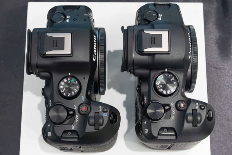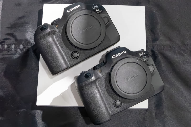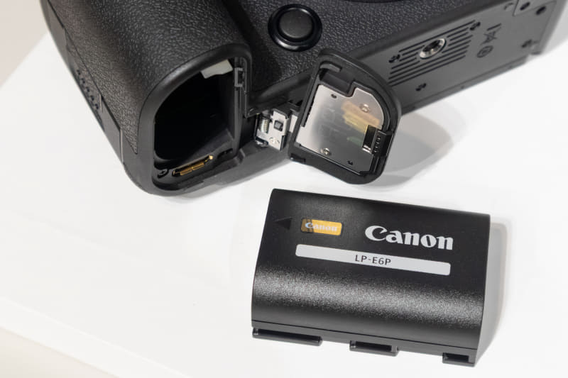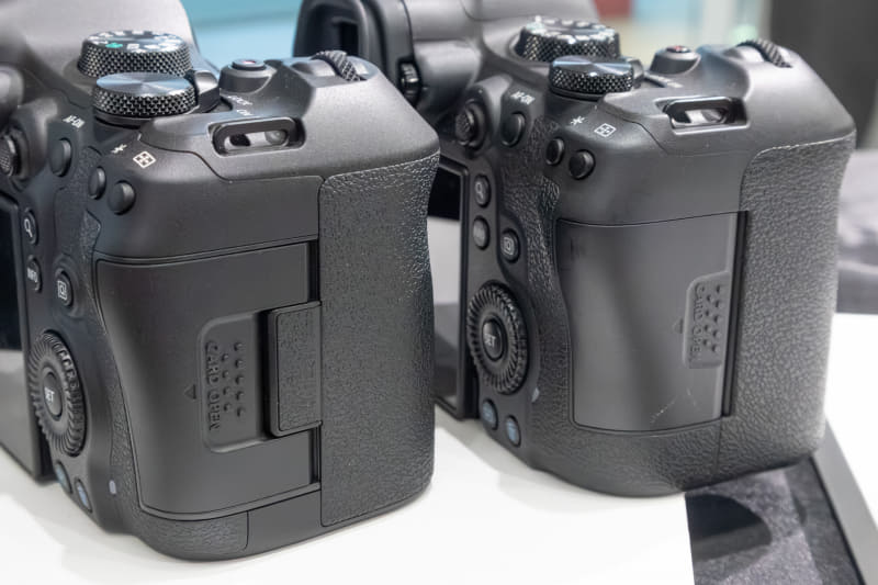 従来のEOS R6 Mark IIと外観はほとんど変わっていないが、対応メモリーカードの変更によりグリップの後ろ側のシェイプが若干変化しているとのこと。