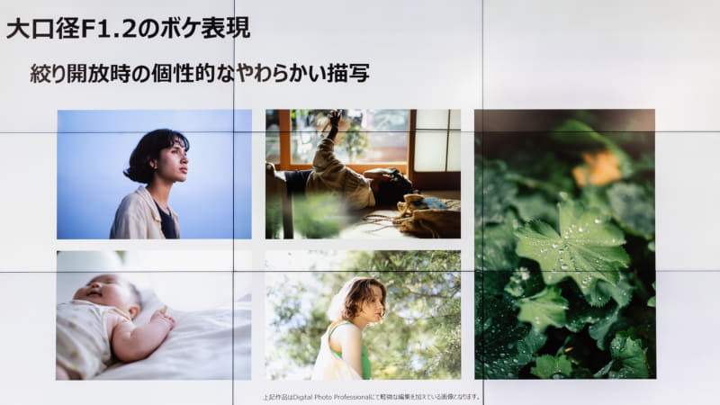 キヤノンによるとEF50mm F1.2L USMは販売を終了しているが、独特の描写を求めて中古市場でも人気が高いという。そうした経緯もあり、同じコンセプトのRFレンズとして開発したという。