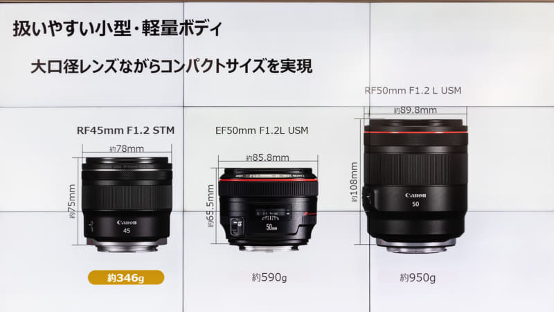 大口径レンズ「RF45mm F1.2 STM」も登場
