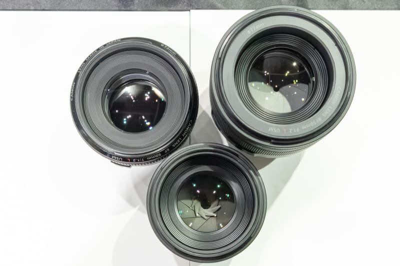 近い焦点距離のレンズには「RF50mm F1.2 L USM」(実勢価格35万7,500円前後)があるが、解像力や逆光耐性などがかなり違うとのことで、差別化を図っているそうだ。他のレンズで使われているASCやSWCといったコーティング技術も非採用となっている。