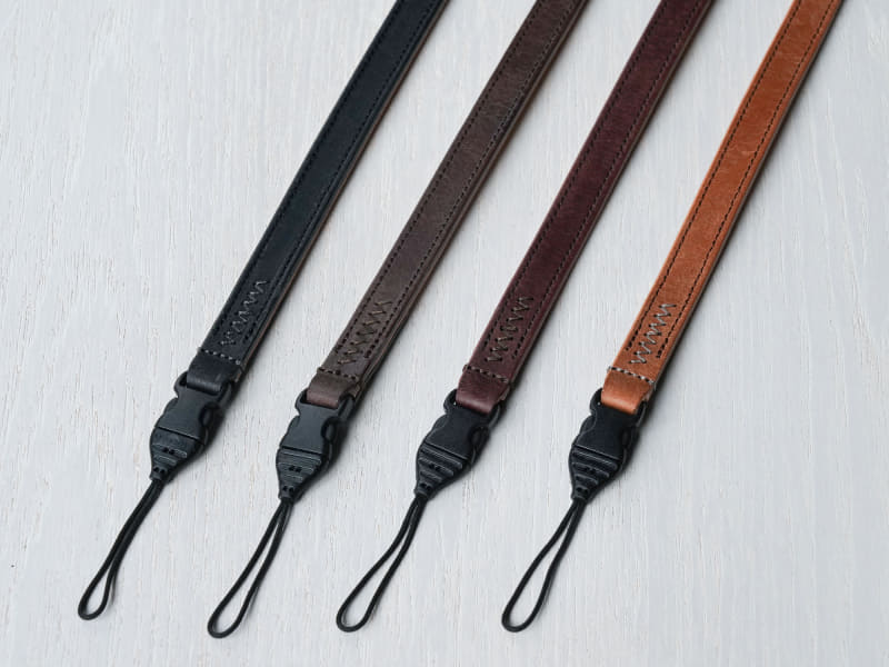 1枚革からの切り出しによる継ぎ目のない構造が特徴で、幅は「クラシコ」シリーズで最も細い13mm。1kg以内のカメラで使用できる。