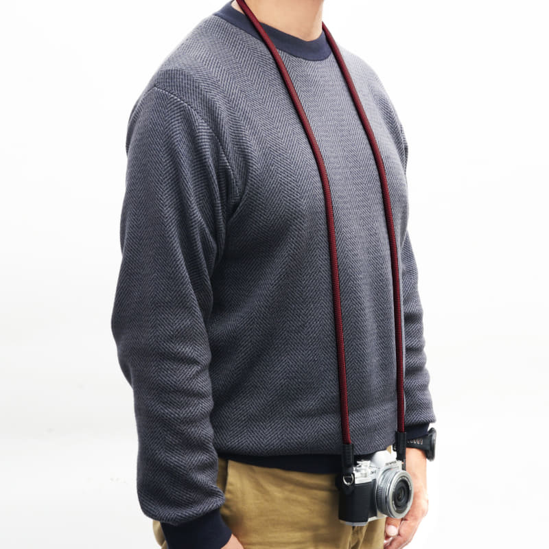 ナイロン縫製糸をロープ状に編み上げた、しなやかなカメラ用ストラップ。既存のブラック(BK)、グレー(GY)、カーキ(KA)、レッド(RD)に、新色となるネイビー(NV)、ローズグレー(RG)、ワインレッド(WR)が追加される。