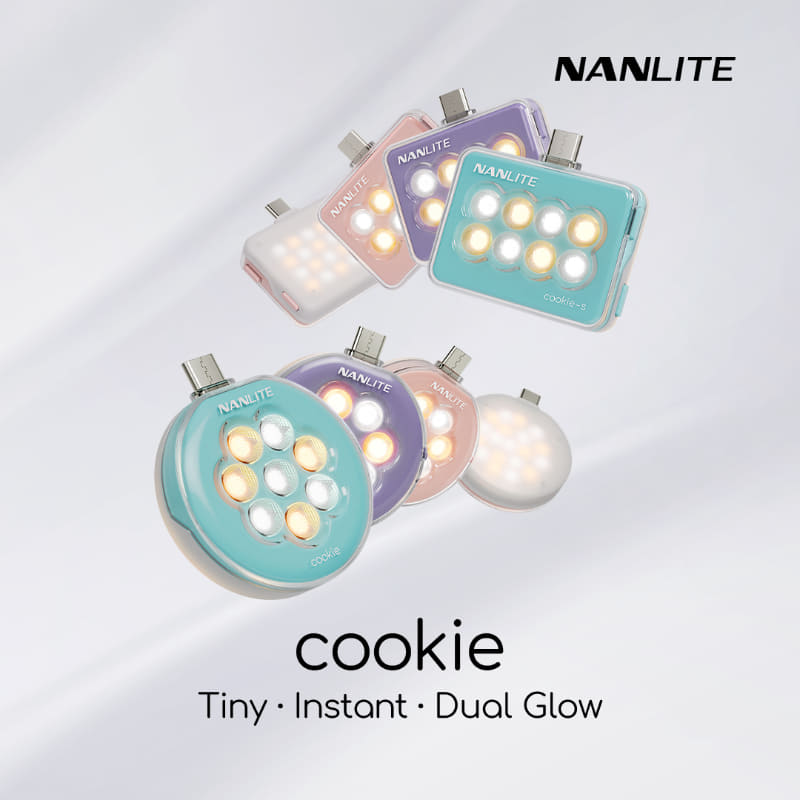NANLITEブランドの軽量LEDライト。「cookie」が丸型、「cookie-s」が角型のフォルムを採用している。カラーバリエーションは、どちらもシアンブルー、ラベンダー、コーラルピンク。