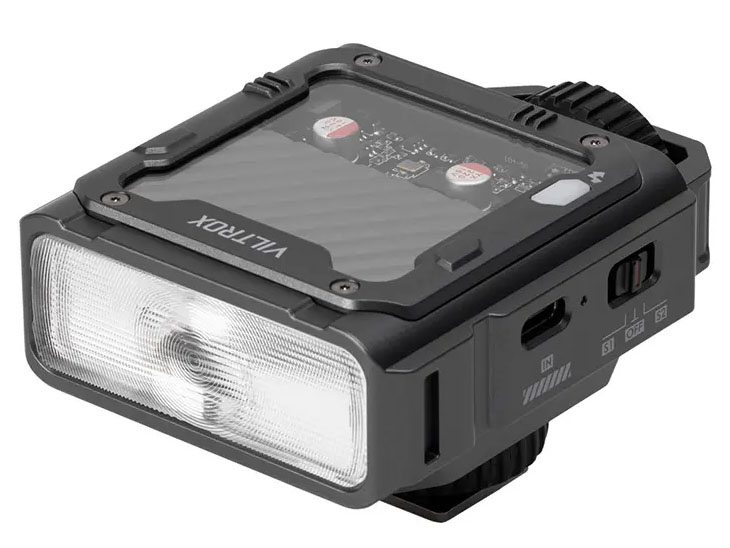 7段階の出力調節のほかTTL調光、S1/S2シンクロ発光などにも対応する。電源は内蔵で充電はUSB Type-C。1回の満充電で約650回の発光が行なえる。ディフューザーが付属する。