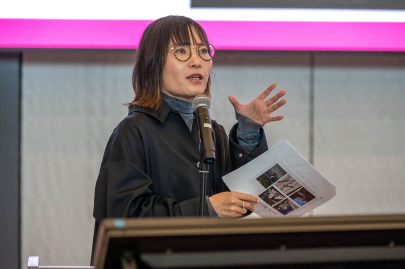 メンバーのほとんどが東京以外の出身者で構成されていたというAグループは、「赤色」をテーマに作品を作り上げた。当初、東京に対して無機質なイメージを持っていた中で、“危険”や“注意”の象徴として街の中の赤色に目を奪われた。しかし多くの人に関わってもらう中で、その赤色がだんだんと温かい色に変わっていったという。テーマ設定から、それを作品に落とし込んでいく表現力が見事だった。