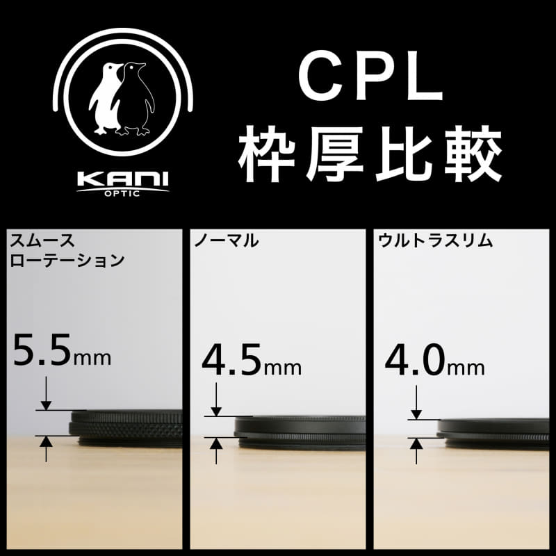 KANI「CPL 0#」フィルターに5.5mmの厚枠など