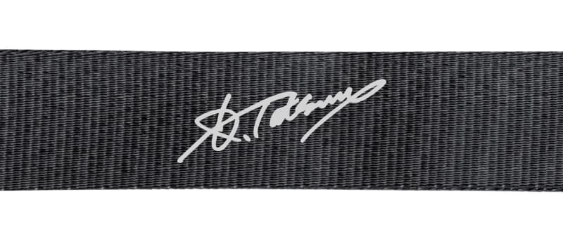 辰野氏、喜多氏のサインはバックルとクイックリリースの間のテープ素材にプリントされている。両氏はワイドトレードが取り扱うLeofotoの三脚でもコラボモデルに起用されている。