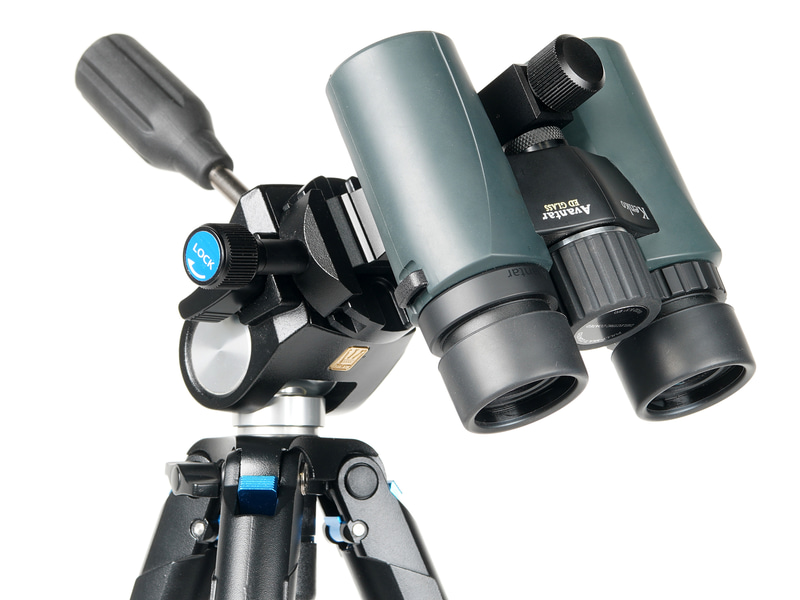 三脚アダプターを取り付けた双眼鏡やフィールドスコープでの観察にも対応する。