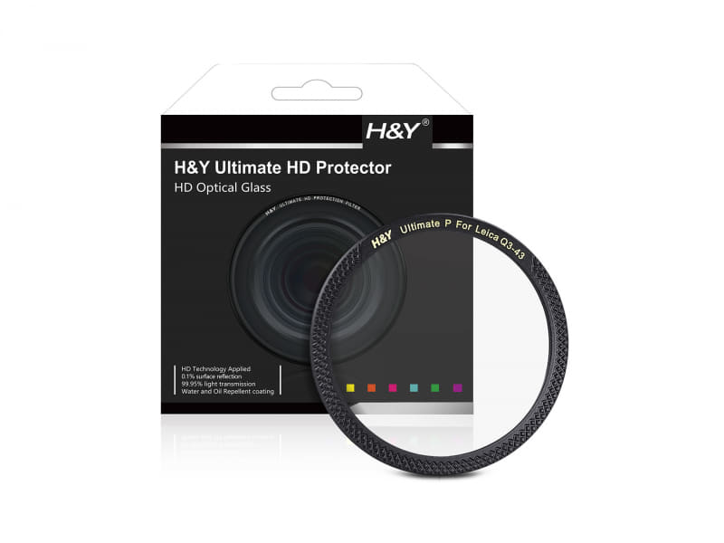 「Ultimate HD Protection Filter」の特徴である面反射率0.1%、最大99.95%の透過率などはそのままに、「ライカQ3 43」専用フードとの併用にも配慮。撥水・防汚・帯電防止機能を備えている。