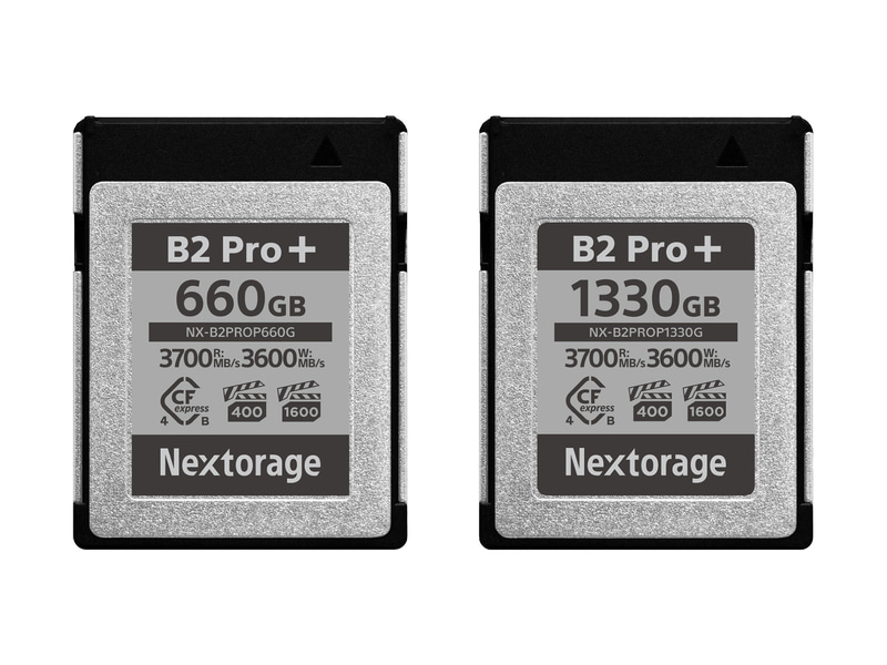 Nextorage株式会社は、VPG1600とVPG400の両規格に世界で初めて対応したCFexpress Type Bメモリーカード「NX-B2PRO+シリーズ」を2月26日(木)に発売する。市場想定価格は660GBが14万9,880円、1,330GBが29万880円。