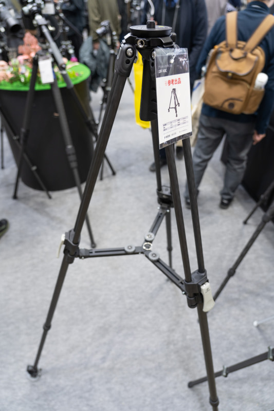 冒頭の写真は、伸長2,920mmというロングタイプの三脚「LM-406CL」。雲台を含めると3m超の高さから撮影できる。写真ではまだ最下段を伸ばしていない。耐荷重は40kg。アタッチメントは75mmハーフボールとなっている。参考価格は17万6,000円。
