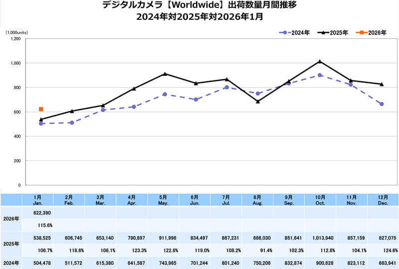 世界全体でレンズ一体型カメラが好調に 2025年デジタルカメラ生産出荷実績が公開