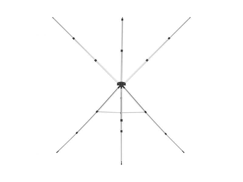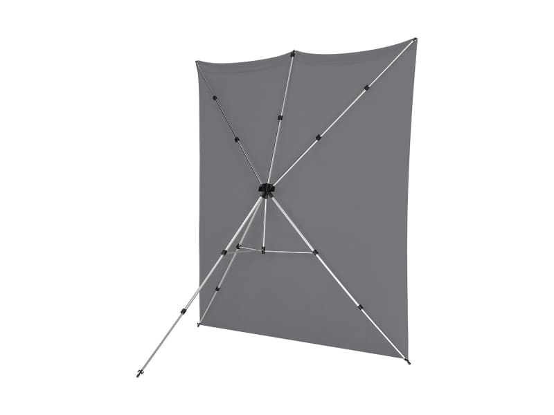 スタンドは、下部フレームとセンターハブ、センターハブに装着する延長アームで構成され、フレームとアームにはフックを内蔵。バックドロップに備えた金属製のグロメットをフックに固定して使用する。