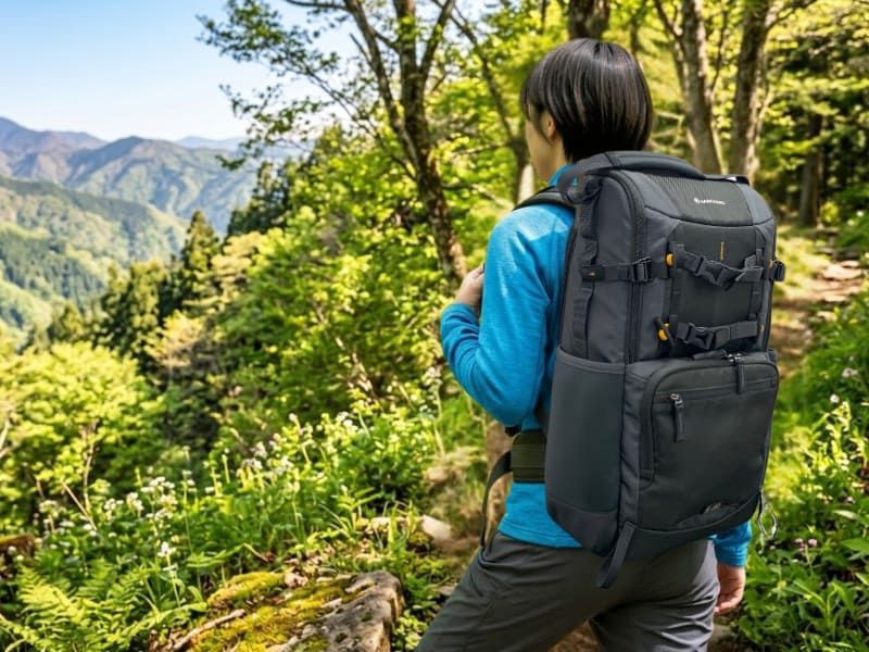 レンズ交換式カメラに加え、200-600mmクラスを含む複数の交換レンズが収納可能。野鳥撮影やアウトドア撮影など、望遠レンズを使用する撮影スタイルに対応する。