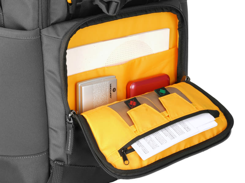 上部にも機材の取り出し口を装備 望遠レンズ主体の撮影にも