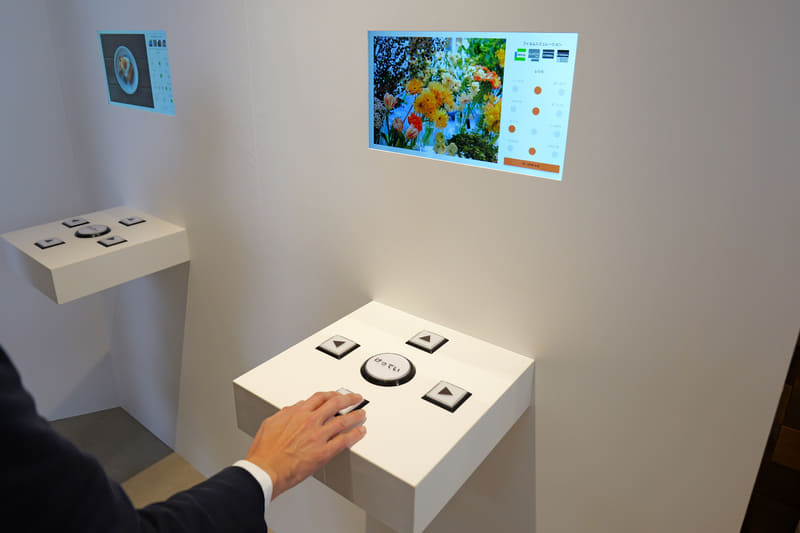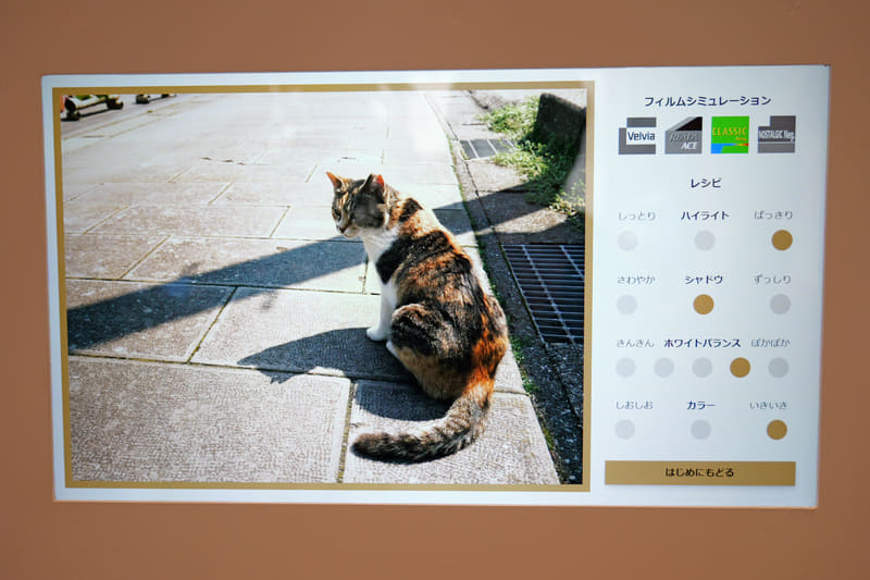 会場内には、「色を感じるエリア」として、フィルムシミュレーションをシミュレーションできるコーナーが用意されていた。好きな雰囲気をいろいろと試すことができる。