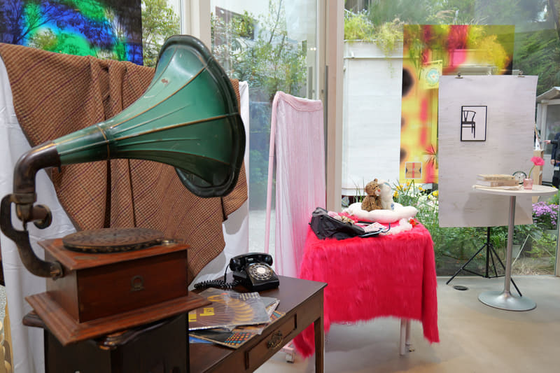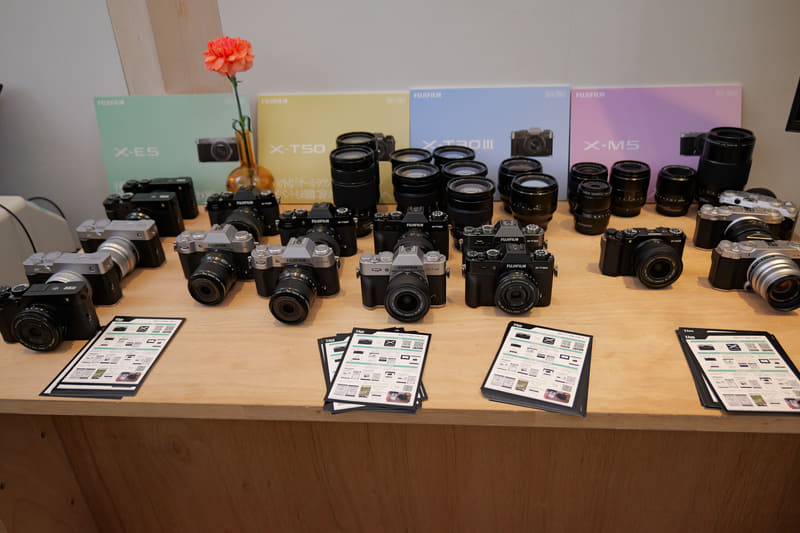 次に選んだ花を撮影する。用意されたカメラはX-E5、X-T50、X-T30 III、X-M5の4モデルだ。そこから好きな1台を借りて、いろんなフィルムシミュレーションを試すことができる。撮影するために花を置く台は、モダンやクラシックなど、7種のバリエーションが用意されている。