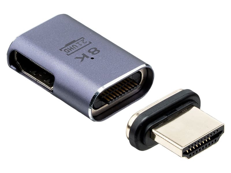 コネクターの部分がマグネットで着脱できるアダプター。HDMIケーブルの抜き差しを容易に行えるほか、HDMI端子の摩耗や劣化も低減できるとしている。本体側面にポートを備えているため、いわゆるL字型アダプターとして利用できる。