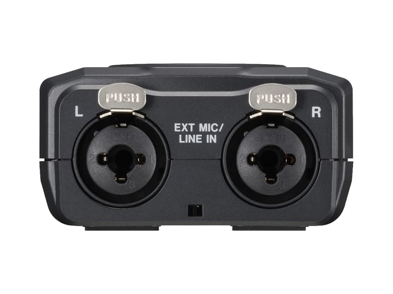単一指向性のステレオ・コンデンサーマイクを搭載。狙った音源をクリアに捉える「X-Y方式」と、周囲の空気感まで立体的に捉える「A-B方式」を切り替え可能な可動式となっている。さらに、+48Vファンタム電源対応のXLR/TRSコンボ入力を2系統装備しており、外部マイクを使用した本格的な収録にも対応する。