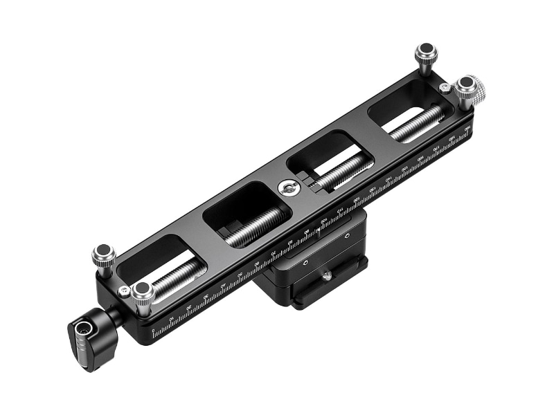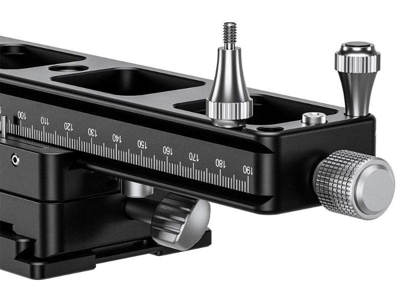 レール側面にはアルカスイス互換形状の溝が設けられており、クイックリリースプレートを使用することなく、対応する雲台に直接取り付けられる。