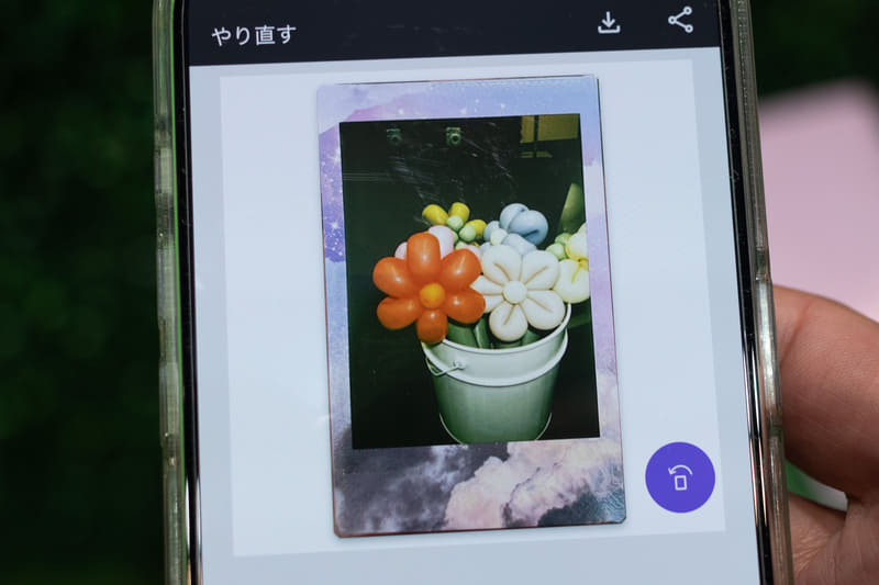 加えて反射も除去できるようになった。チェキフィルムは光沢があるため反射もスキャンされやすかったが、画面のガイドに合わせて4回撮影するとAI処理で反射が除去される。