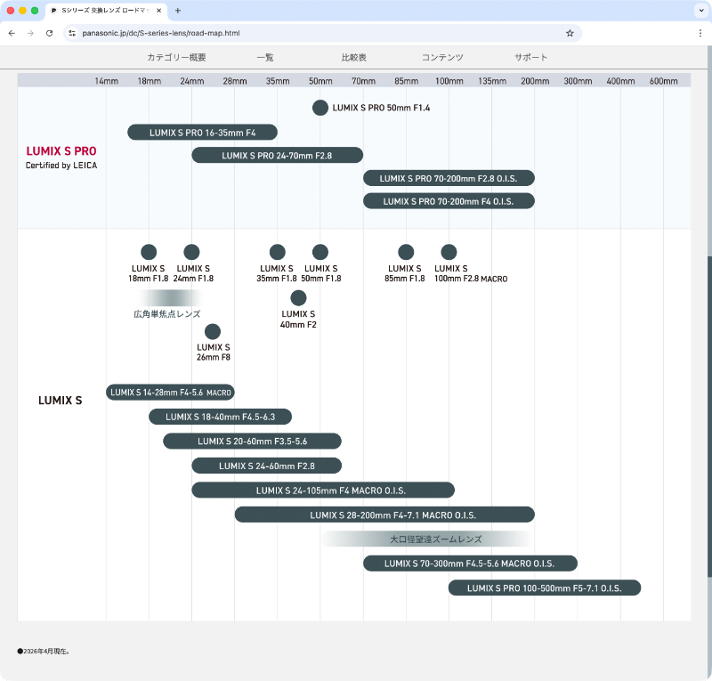 パナソニックは4月22日(水)、「LUMIX Sシリーズ」のLマウント交換レンズロードマップを更新した。