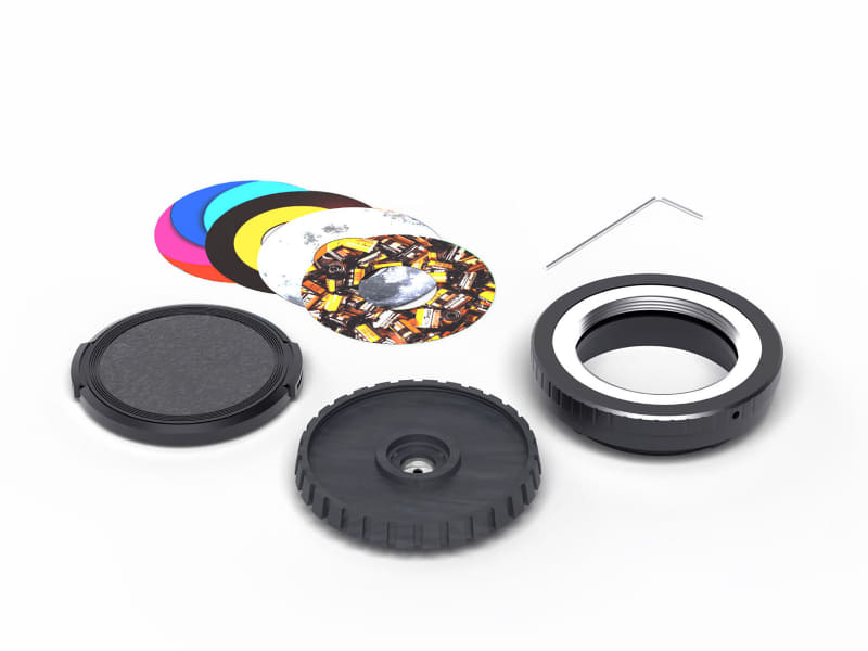 GIZMON Kodalen FSは、Kodak(コダック)のレンズ付きフィルム「FunSaver」の「ローファイでエモーショナルな描写」を再現したというミラーレスカメラ向け交換レンズ。絞りは固定でF16。前面の化粧リング(銘板)部分は着せ替え可能で、4種類のデザインが付属している。マウント部分はスチール製。レンズキャップが付属する。
