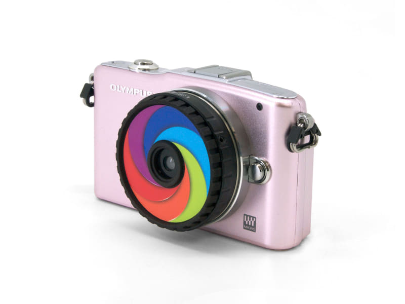 前面のレンズユニットは着脱でき、ネジを途中まで緩めることで通常よりも寄ってピントを合わせることができる。