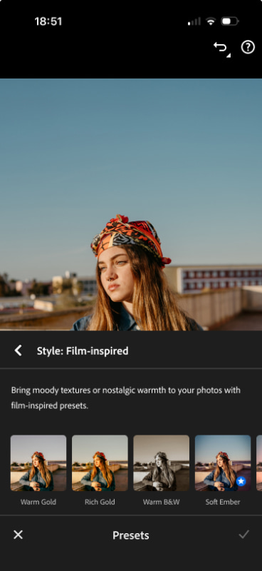ノスタルジックな表現やトーンの調整を直感的に行える「フィルム風プリセット」も追加。スライダーで適用量をコントロールしながら画像に適用できる。さらに、AIが写真の選別をサポートする「アシスト付きセレクト(Assisted Culling)」の高速化や、スライダー操作の体感速度向上といったパフォーマンス改善が図られており、大量のデータを扱うユーザーの作業負担が軽減される。
