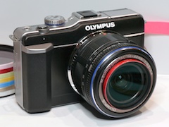 | E-PL1での装着例。レンズは40.5mm径のM.ZUIKO DIGITAL ED 14-42mm F3.5-5.6 | DMC-GF1ホワイトにパールピンクのプロテクトフィルター |
