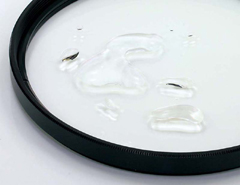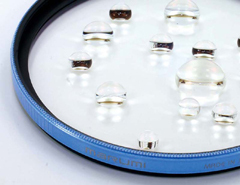 | マルチコートの従来製品(右)との比較。My Color Filter(左)は高い撥水性能を有する(マルミ提供) | |