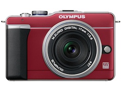カラーは国内で発売済みのホワイト、シャンパンゴールド、ブラックのほかに、宝石をイメージした「ルビーレッド」と、万年筆(ペン)のインクをイメージした「ブルーブラック」を追加。限定キット専用のカラーという。本体カラーおよびキット内容以外は発売済みのE-PL1と共通。