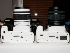 | スーパーインポーズを搭載したため、ペンタ部は大型化している | K-xにあったボディ上部のシルバーのラインはなくなった |