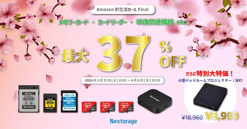 Nextorage株式会社は、4月3日(金)から開催されるAmazon「新生活セールFinal」に参加。セールに先駆け、3月31日(火)からの先行セールにも登場する。