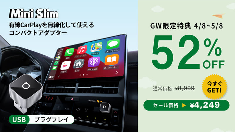 いずれもCarPlayやAndroid Autoなど、自動車に車載されたナビ・ディスプレイオーディオを活用する製品。クーポンコードを組み合わせることで、最大52%OFFとなっている。