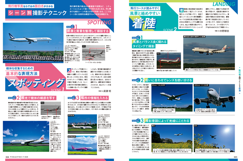 10月20日(月)発売の『デジタルカメラマガジン2025年11月号』では、航空機の撮影初心者向けの基本技法からシチュエーション別撮影アプローチ、そしてプロが選定した全国10箇所の空港撮影スポットガイドを収録。