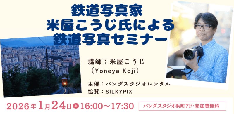 鉄道写真家の米屋こうじさんが講師を務める座学の「鉄道写真セミナー」が開催される。無料で参加が可能。