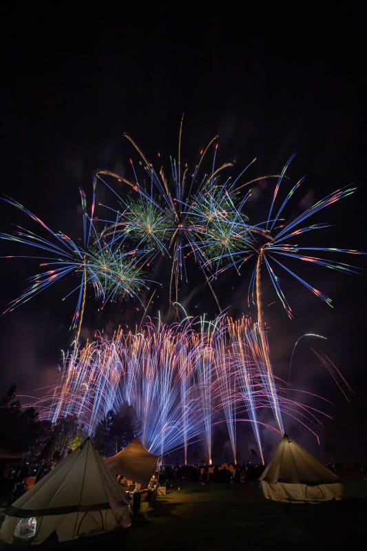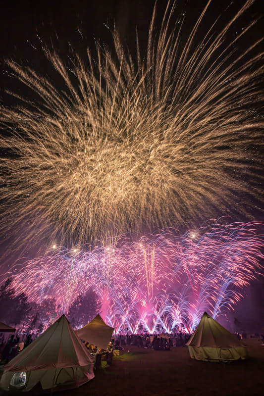 「華松煙火」(長野県松本市)の上条僚士さんと上条栞菜さん兄妹が仕掛ける花火イベント。妹の栞菜さんが空間プロデュースを、兄の僚士さんがミュージックスターマインの演出と打ち上げを担当。夜空に広がる閃光と轟音に包み込まれる感覚で、まるで花火の中にいるかのような没入感を味わえるという。