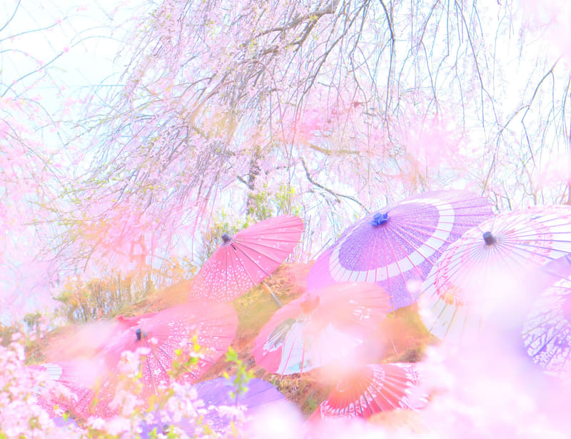 桜並木が130m続く「桜のれん」をはじめ、桜のピンク、菜の花の黄色、空の青が広がる「三春の丘」、桜と和傘が共演する「せせらぎの谷」など、園内には撮影スポットも多く見られる。