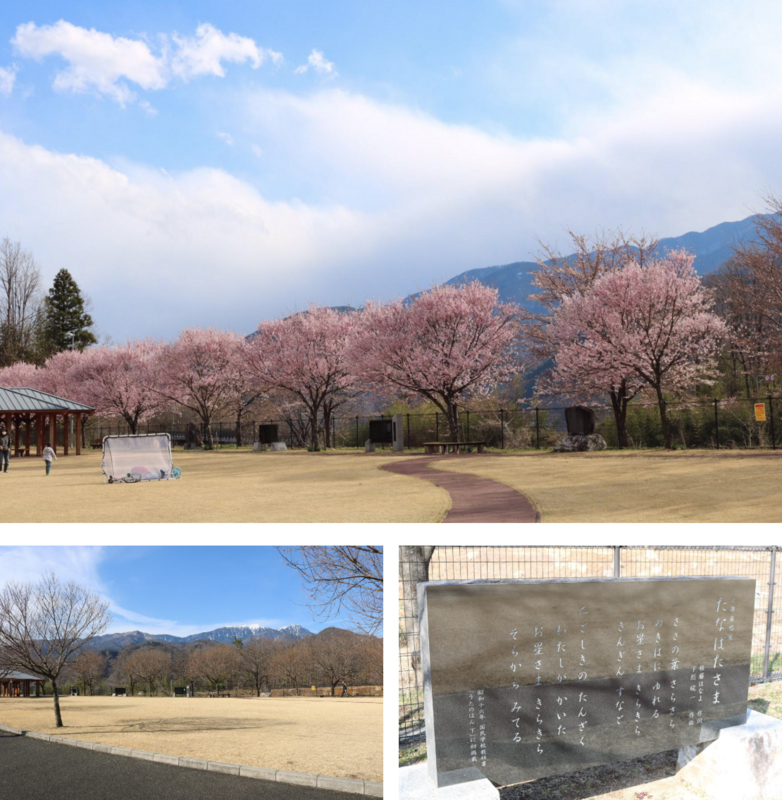 園内には、穴山町出身の権藤はなよさんによって綴られた文部省唱歌「たなばたさま」の詩碑が設置されている。