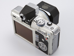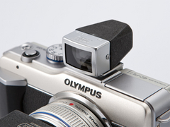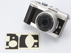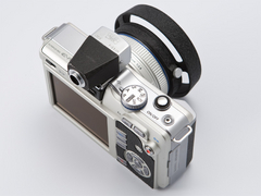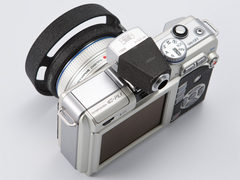 | ファインダーの前部はシルバーだ。これはE-PL1の天面のシルバーと対になる | この革貼りキットは、背面操作部のパーツも用意されている |