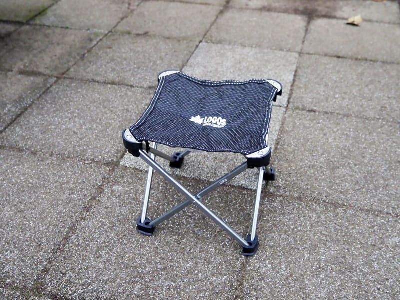 まずは、LOGOS(株式会社ロゴスコーポレーション)のキュービックチェアだ。携帯椅子としてはスタンダードな折りたたみ形状で、よく目にする携帯椅子のタイプだろう。