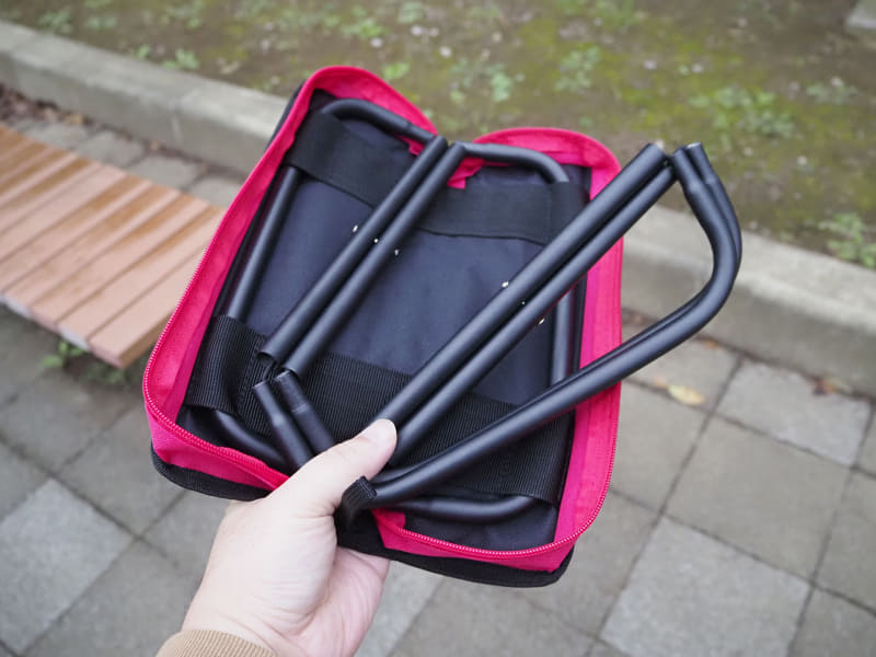 また、製品紹介ではケース(座面)のクッション性を謳っているが、そこまであるようには思えない。長時間座ればお尻は痛くなるし、そもそも腰が痛くなるのでそこまでは座れない。それでもケース一体型の利点として、そのままバッグなどに入れておけるため携帯性は良い。