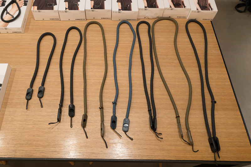 まず、ネックストラップはフォーム(ロープ素材)とレザー(フルグレインレザー)の2種類があり、それぞれ4種類の長さを用意している。ストラップ長はネックが79cm、ショートが104cm、スタンダードが119cm、ロングが134cm。いずれも長さ固定式で、それによりスッキリとしたデザインになっている。