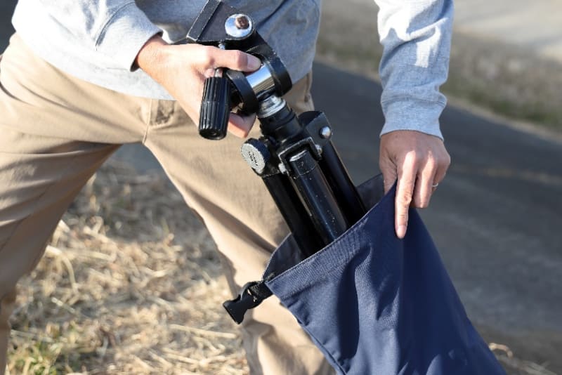 3ウェイ雲台付きの三脚を付属ケースに収納しようとすると、パン棒を1本外さなければ入らないことが多い。現場での取り出しや片付けに手間がかかり、咄嗟の撮影機会を逃しかねないという場面は少なくない。ロールトップ型三脚バッグはパン棒を付けたまま収納できるため、この手間をそのまま解消してくれる。