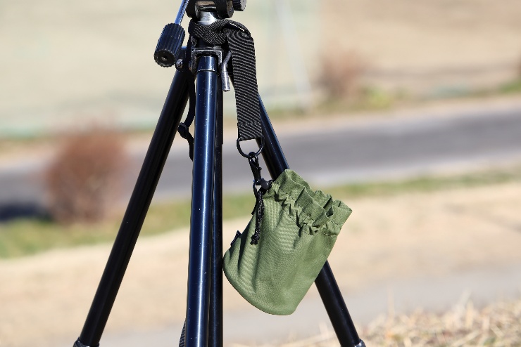 開口部が広く取られているので三脚の出し入れはスムーズで、ロールして折り畳む構造により三脚の長さに合わせてバッグの全長を調節できる。重量は350gと軽く、使わないときは折り畳んでカメラバッグに収まるコンパクトさになる。撮影現場ではクッション代わりに使えるのも便利な点だ。